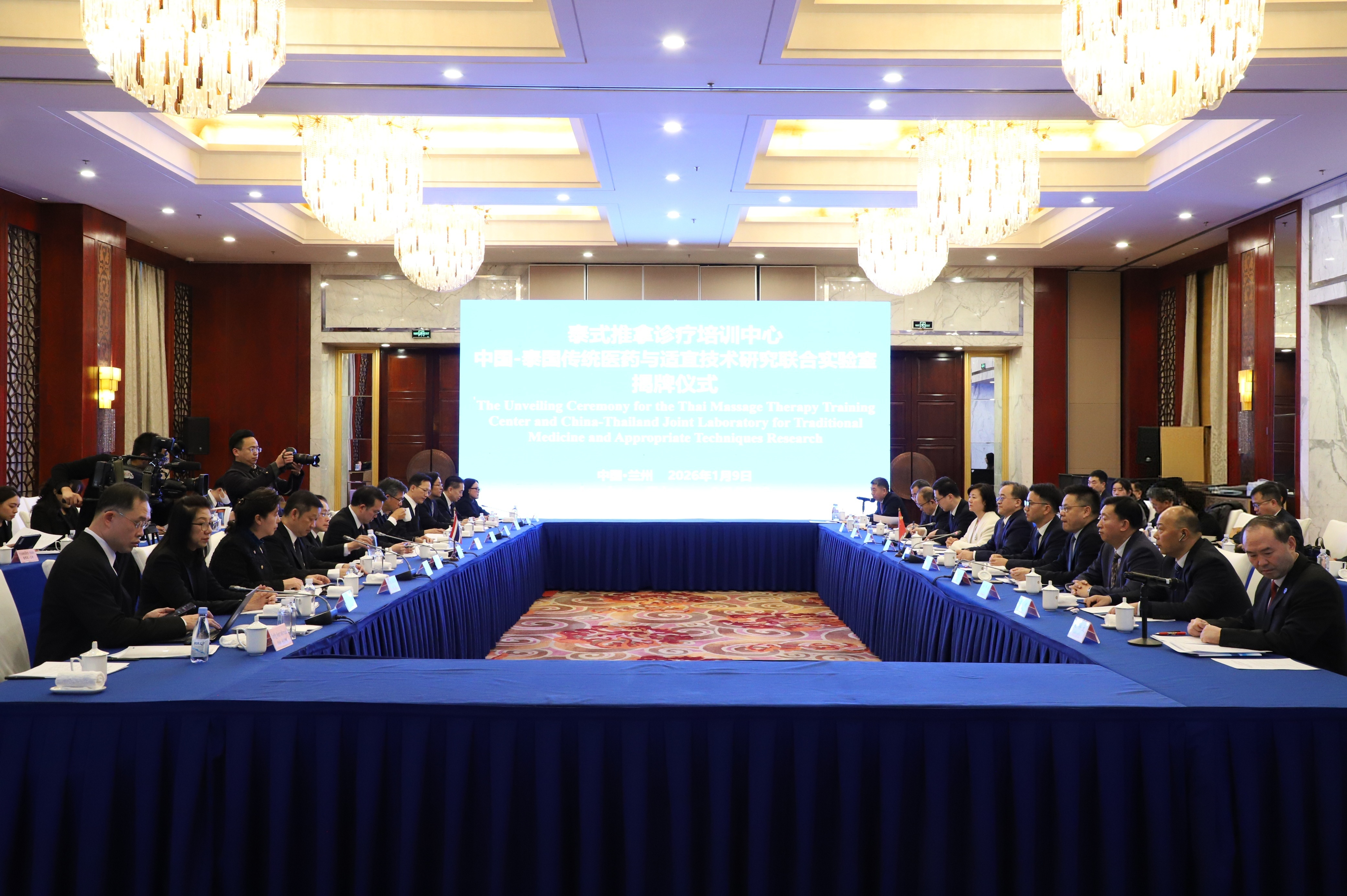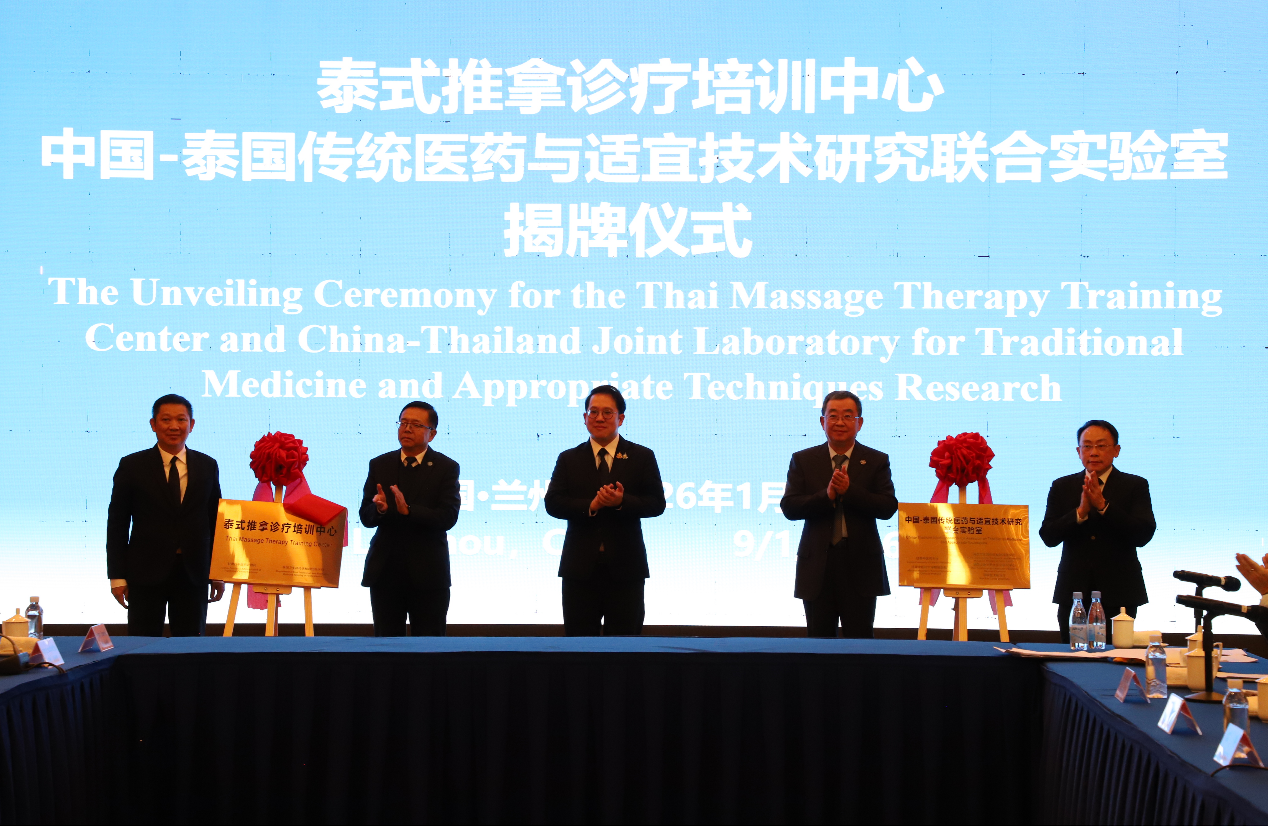 2026年1月9日,中国—泰国传统医药与适宜技术联合实验室及泰式推拿诊疗培训中心在兰州挂牌。泰国卫生部长帕塔纳·蓬帕率代表团一行出席揭牌仪式,省教育厅、省科技厅、省工信厅、省商务厅、省政府外事办、省医保局、省药监局、甘肃中医药大学、甘肃中医药大学附属医院等相关部门(单位)负责人及企业代表参加相关活动。